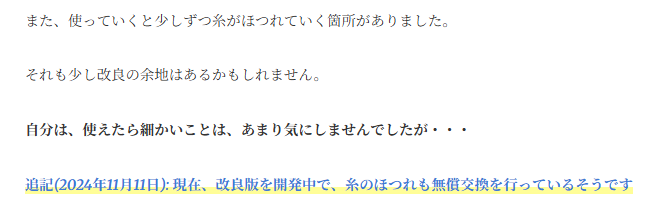 あとは、一年ほど使いづづけて、どれだけ劣化するのか、